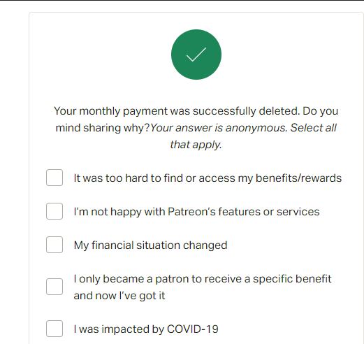 정상적으로 패트론 후원 취소가 된 것이다