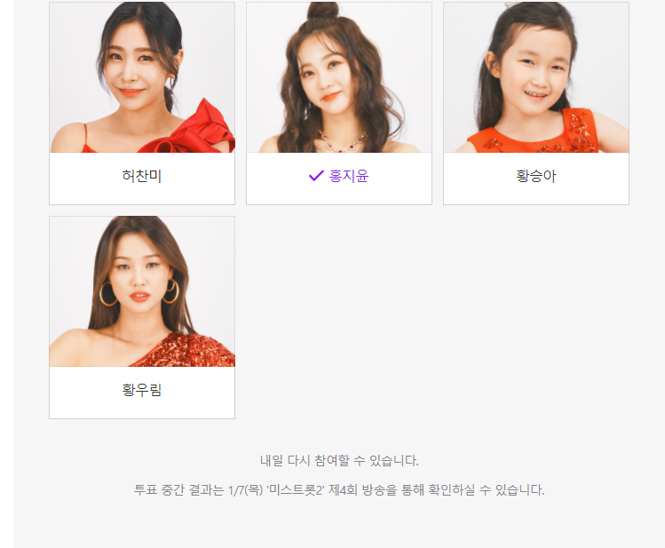 선택한 미스트롯에게 투표가 완료된 것이 보인다