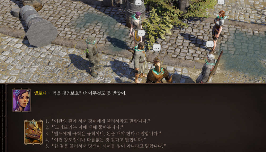 대략 불량배 두명이 엘프에게 삥을 뜯고 있는 것인데