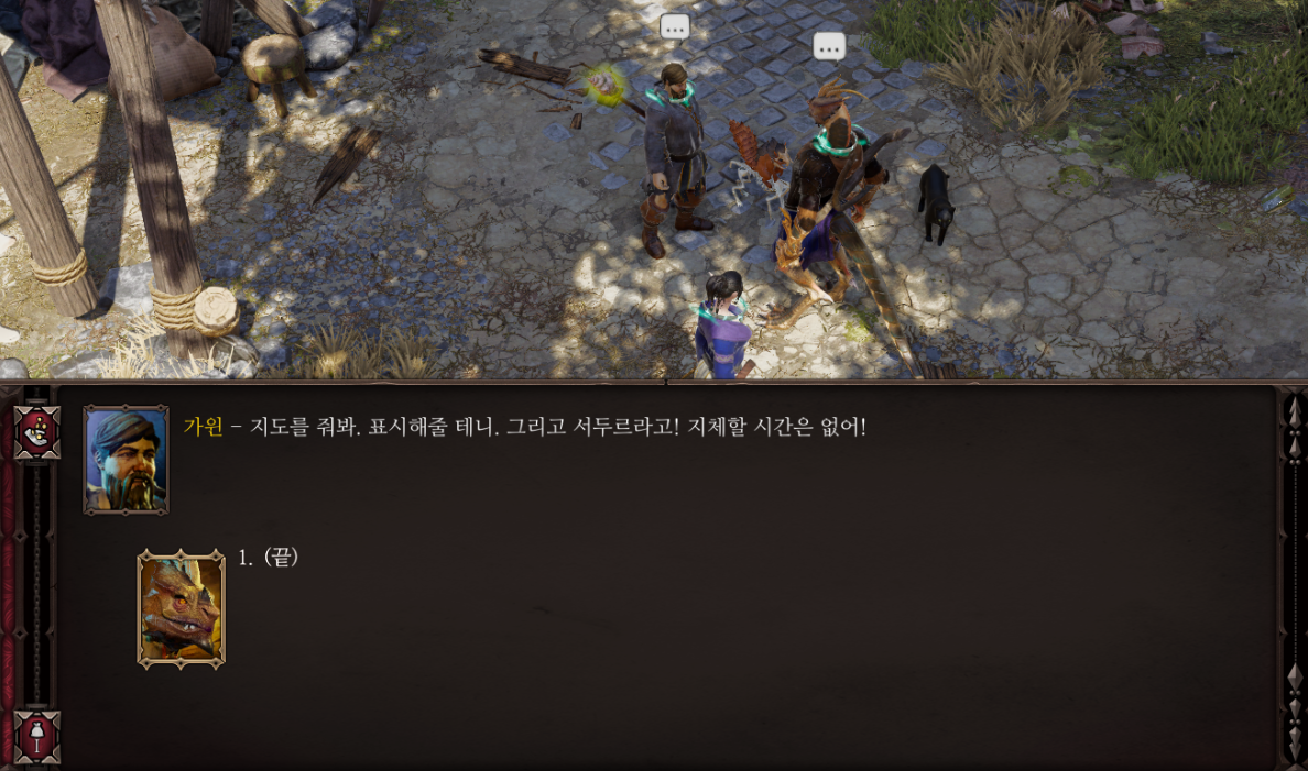 이후 가윈에게 보고하면 지도에 위치를 표시해주고 따라오라고 하는데