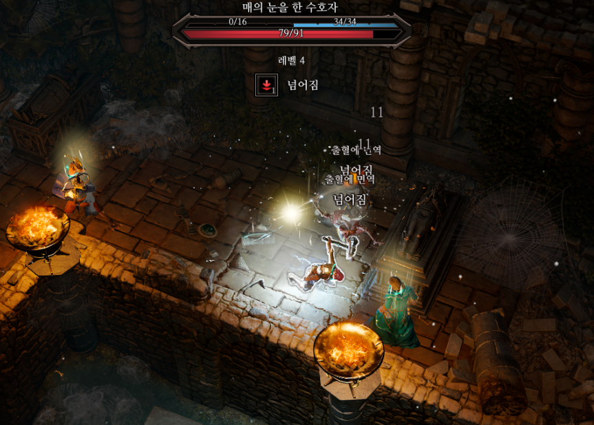 오른쪽은 도적으로 제거하고 하나 뛰어오는 언데드 리자드는 그냥 패서 잡으면