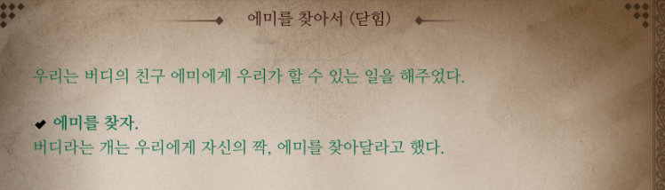 마지막으로 버디에게 돌아와 에미가 죽었다는 걸 알려주면 퀘스트는 끝이 난다