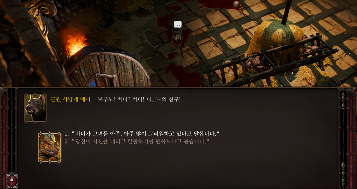 지문에서 에미에게 버디를 아냐, 버디가 그리워하고 있다 이렇게 지문을 선택해야 전투가 안걸리고