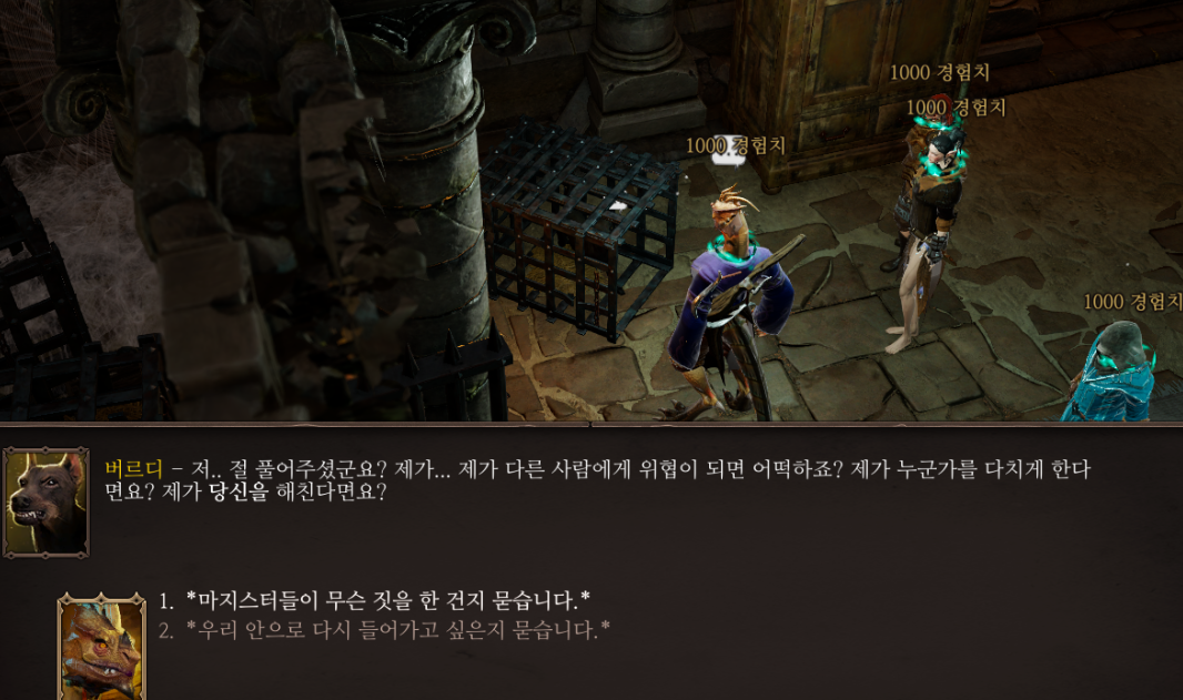 버르디에게 말을 걸어 선택지로 우리를 열어주면 경험치를 받는다