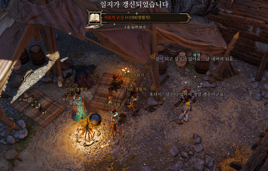 바로 재생 마법을 이용해 사람들을 치료해주면 각자 아이템들을 챙겨준다