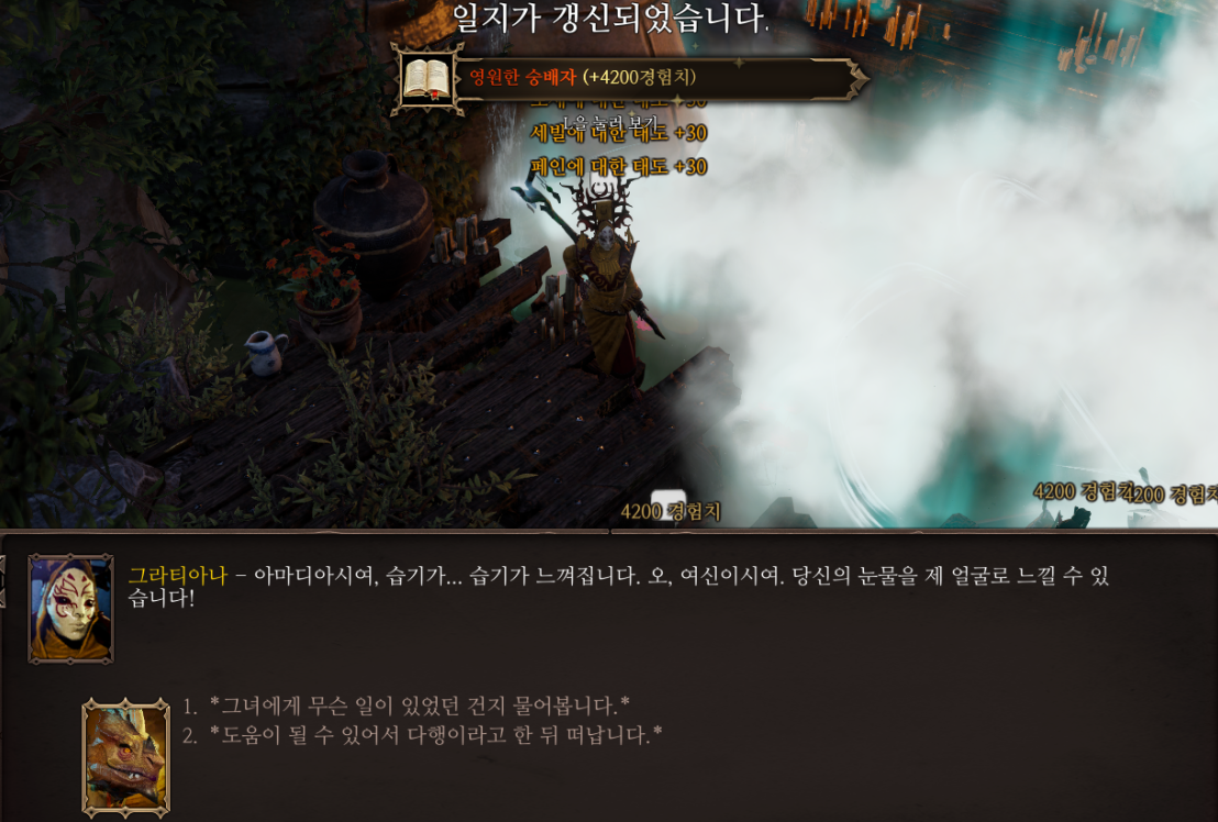 그라티아나와 대화를 끝낸 이후에 보상을 챙기면 영원한 숭배자 퀘스트도 끝이 난다
