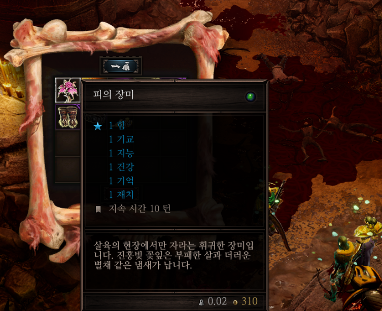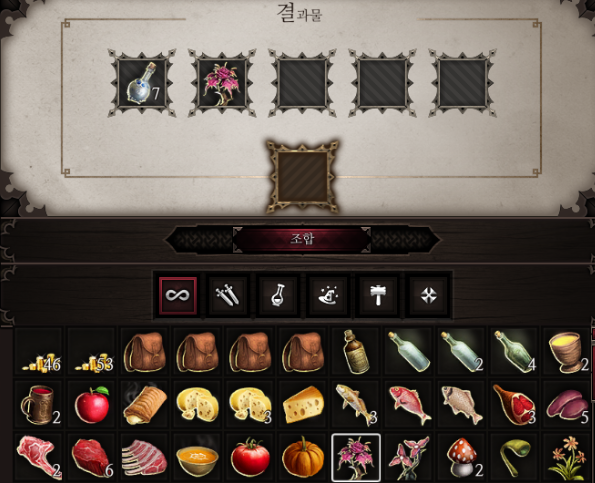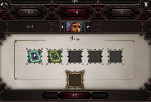 피의 장미와 빈 병을 조합하면 피의 장미 향료라는 템이 나오는데
