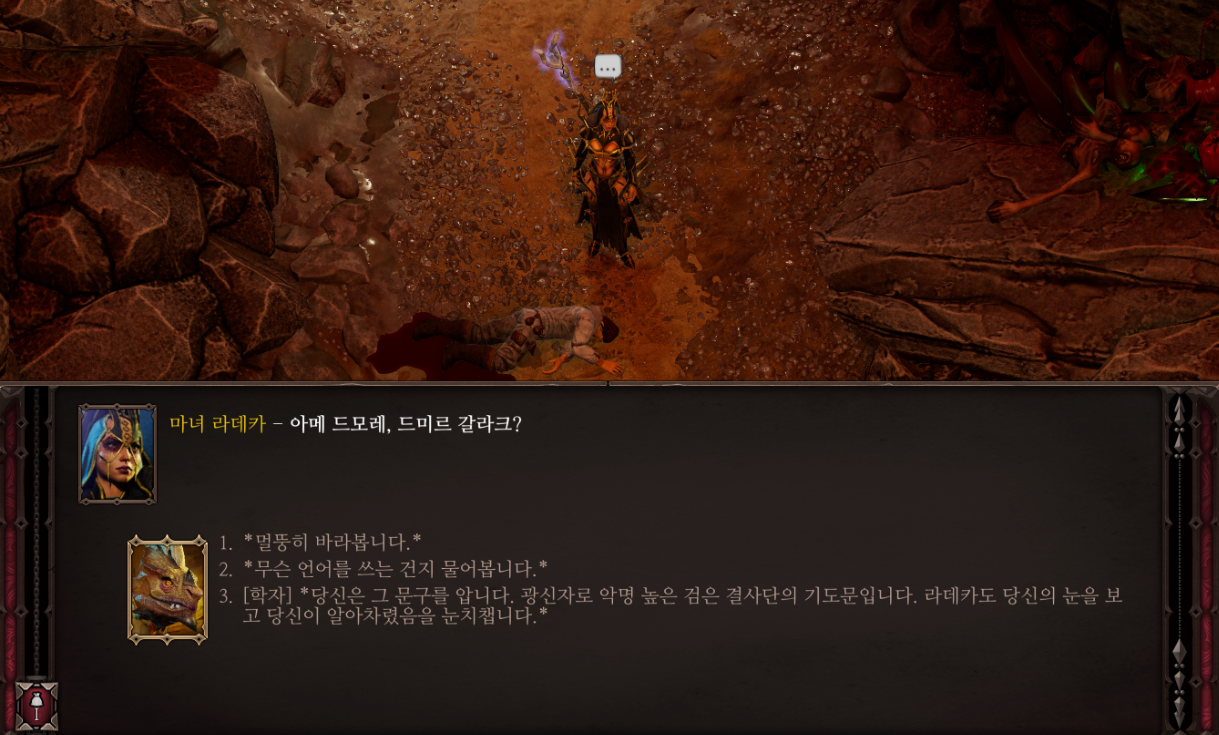 라데카에게 근접하면 자동으로 대화가 시작되는데