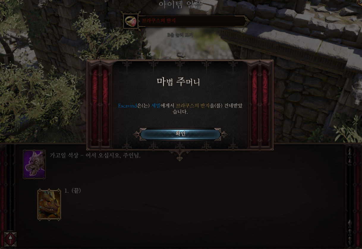보상을 받고 가고일의 미로 퀘스트는 종료된다