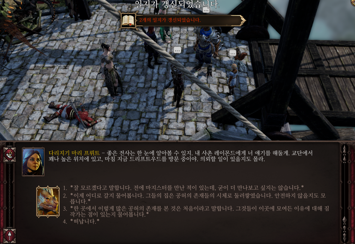이후 다리지기와 애는 드리프트우드 막사 내에서 볼 수 있다