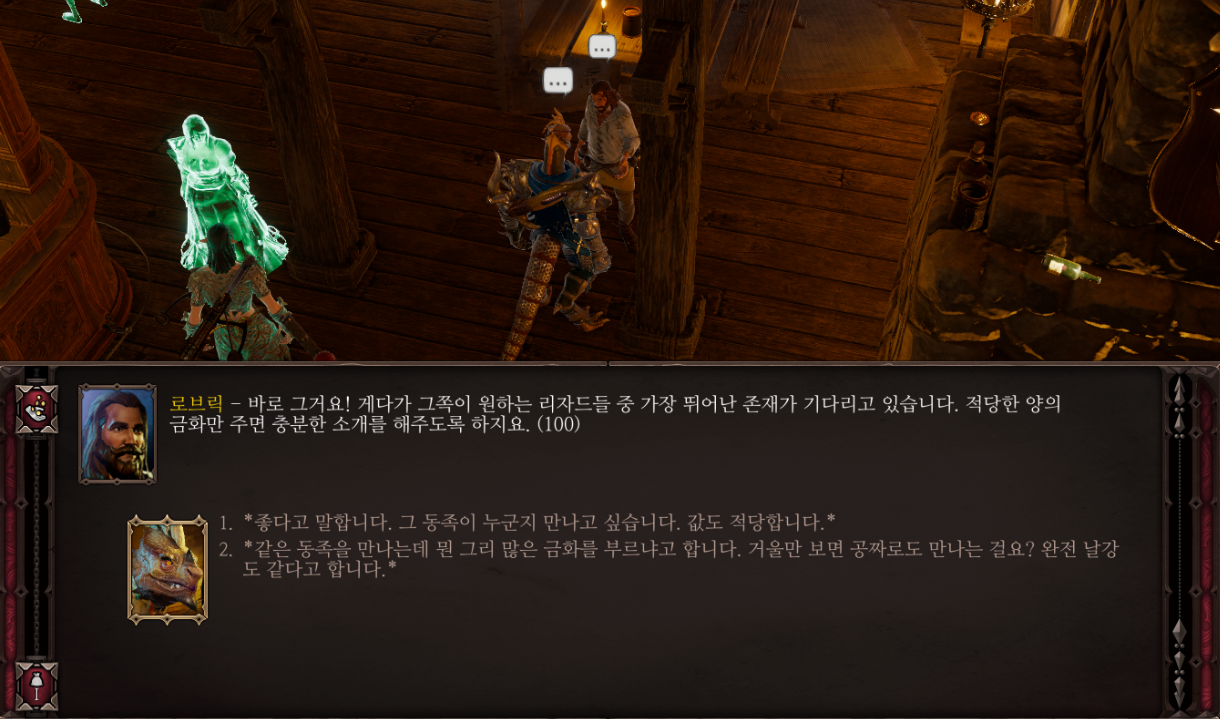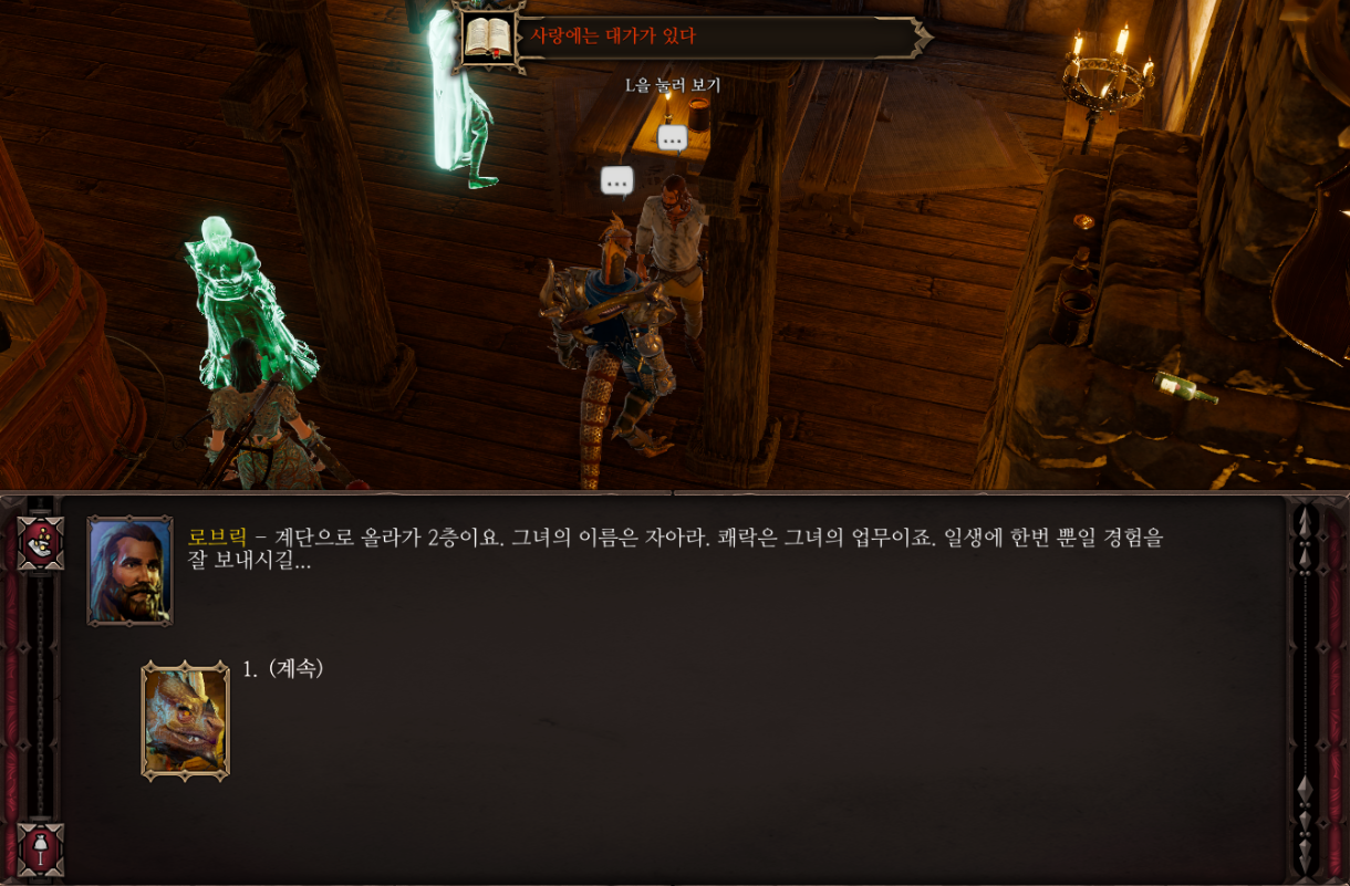 이제 여관 1층으로 내려오면 로브릭이 쟤들이 협박해서 그랬다