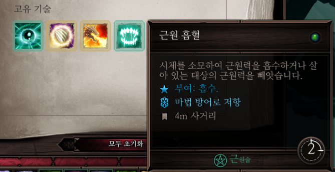스킬 창을 눌러보면 근원 흡혈이 들어온 것을 확인할 수 있다
