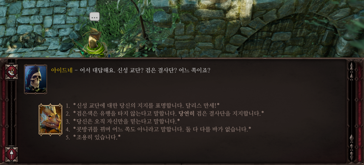 말을 걸어보면 교단이냐 결사단이냐 묻는데