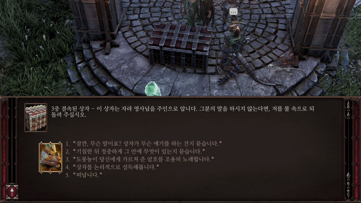 이후 씨우에게 말을 걸어 상자를 여는 방법을 알아내면 된다