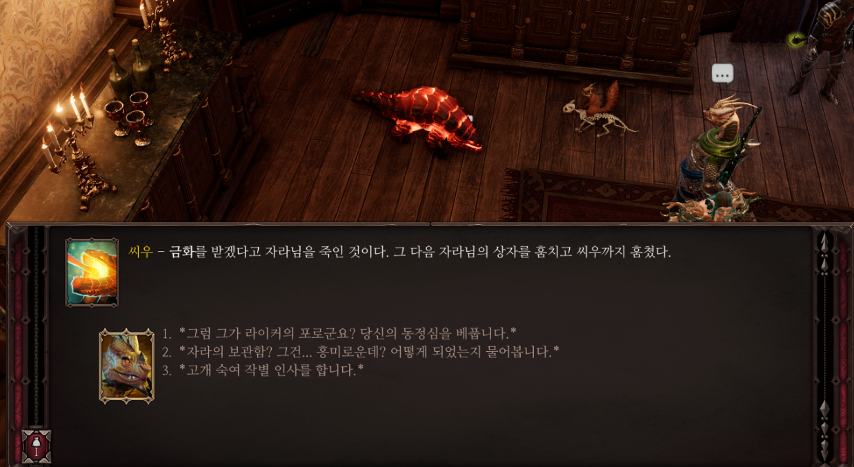 이후 상자를 열고 전리품을 챙기면 갈라진 혀끝으로 말하는 것 퀘스트는 끝이 난다