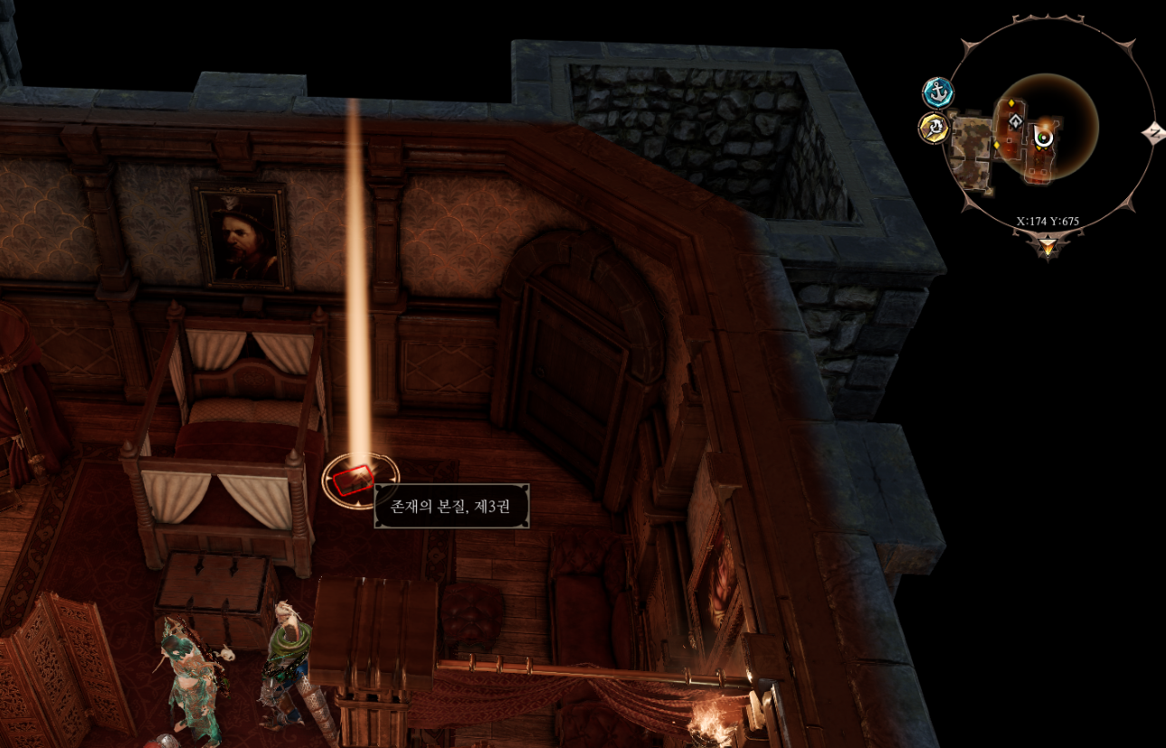 인기 대결 퀘스트를 받으려면 라이커의 집 2층으로 올라가야 되는데 그냥 들어가면 도둑질이므로 이렇게 다른 캐릭터들로 말을 걸어 시야에 들어오지 않는 상태에서 문을 열거나 재치가 높다면 그림을 눌러 열쇠..