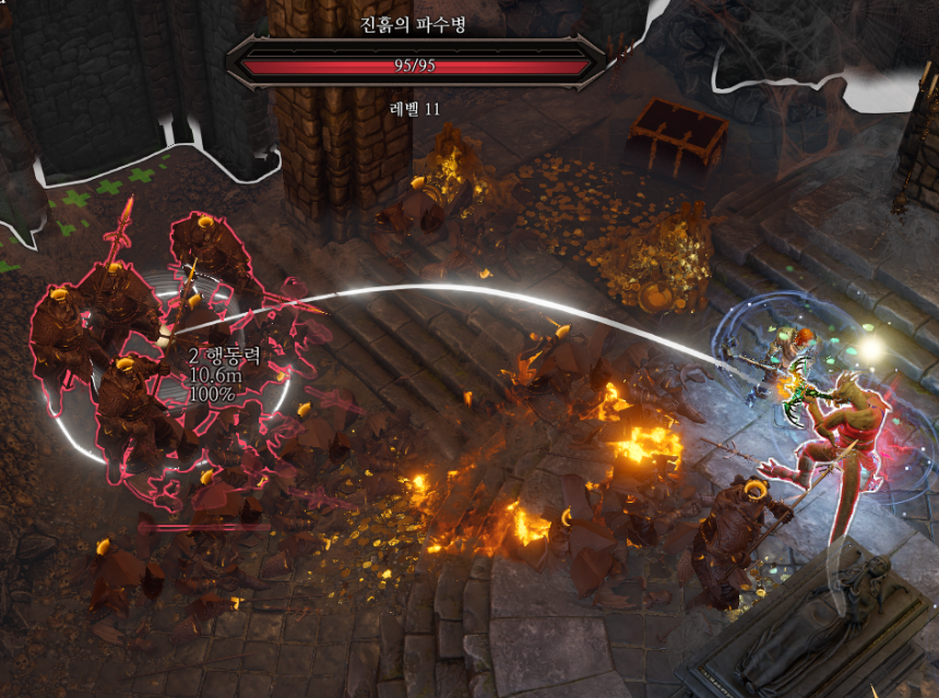 다만 적들의 피가 굉장히 낮기 때문에 시체 폭발같은 스킬을 이용해 한번에 다 저승으로 보내줄 수 있다