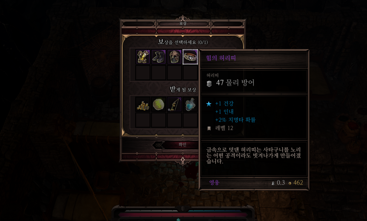 선택지를 제대로 골라 나탈리를 살려 놓으면 스완에게 보상을 받으며