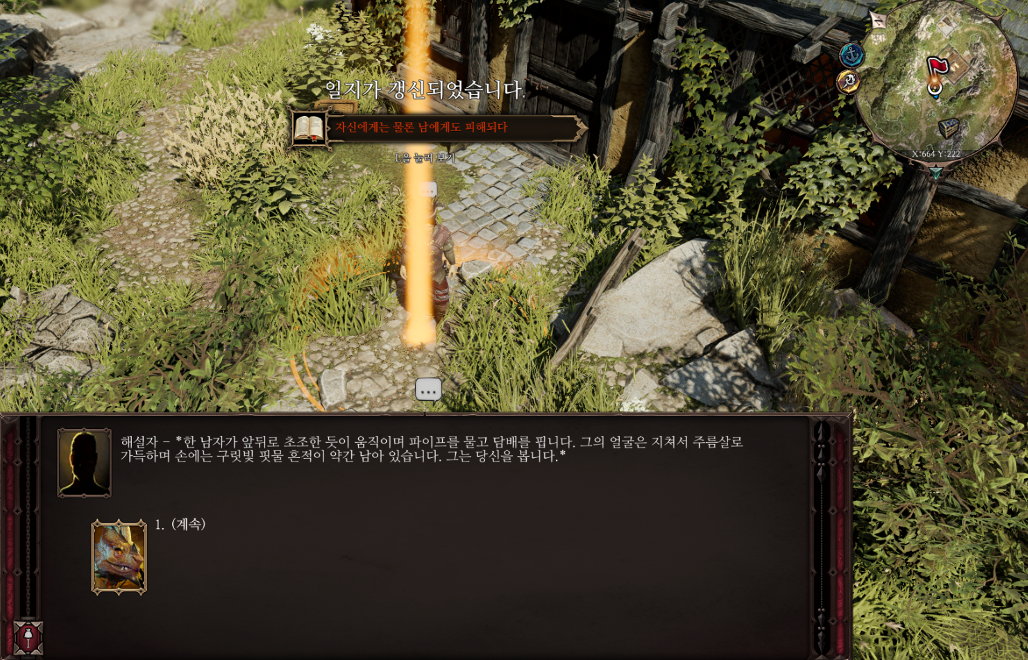 자신에게는 물론 남에게도 피해되다 퀘스트를 진행하려면 반드시 학자 태그가 필요하니