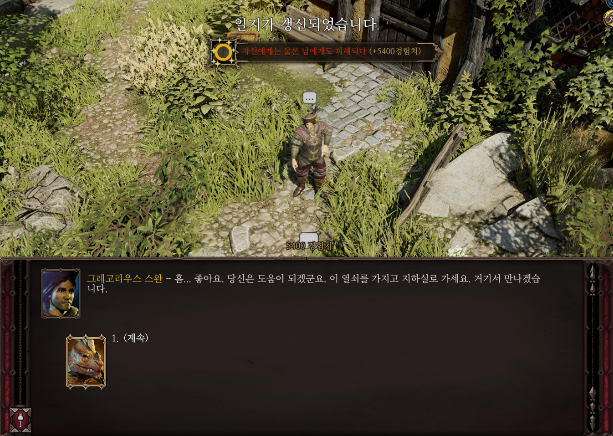 그레고리우스 스완에게 학자 태그로 말을 걸면 지하실에서 보자고 하는데
