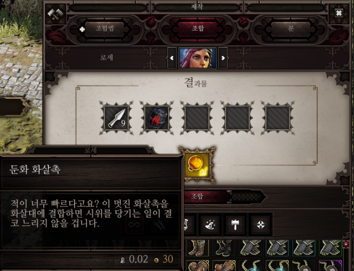 화살촉과 기름통을 조합하면 둔화 화살촉을 얻을 수 있고