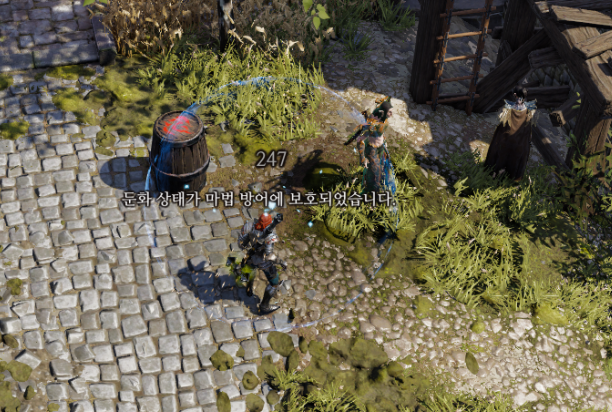 그냥 화살을 쏜 상황인데 대기 피해, 독 피해가 따로따로 들어가는 것이 보인다