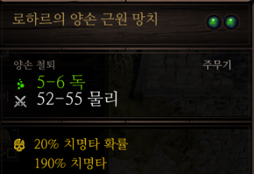 보면 물리 대미지만 달려있는 망치에 독 대미지가 추가로 달려있는 것이 보이는데