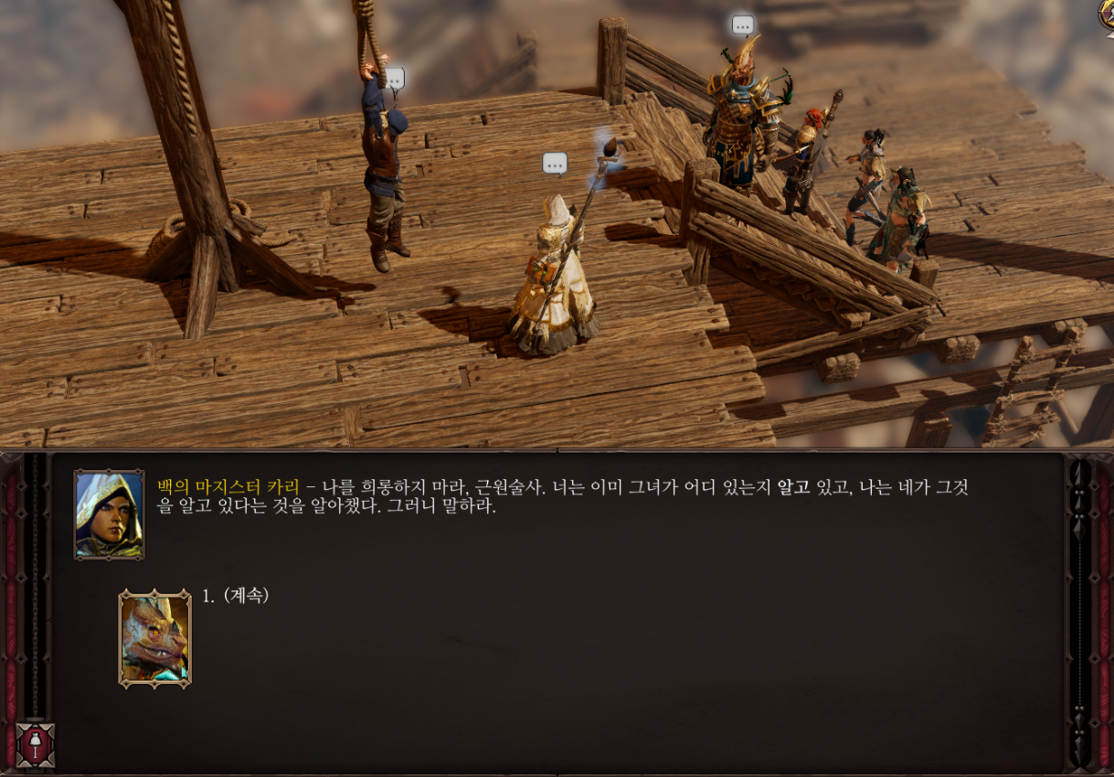 위치로 이동하면 카리가 그위디안을 심문하는 것이 보이는데