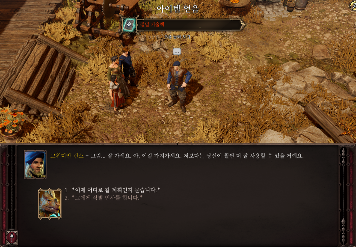 이후 그위디안에게 말을 걸면 절멸 기술책을 받고 밧줄 위에서 퀘스트는 끝이 난다