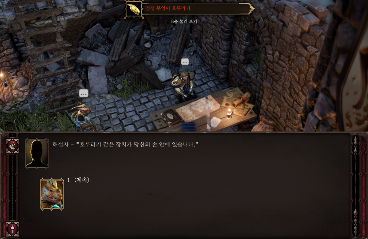 이후 전쟁 부엉이 호루라기를 받게 되는데 이거 잘 보관하고 있는게 좋다
