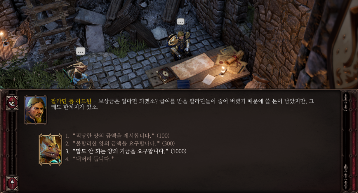 보상은 무조건 3번을 누른 뒤 설득을 통과하면 퀘스트 클리어 이후 1000원을 받을 수 있다
