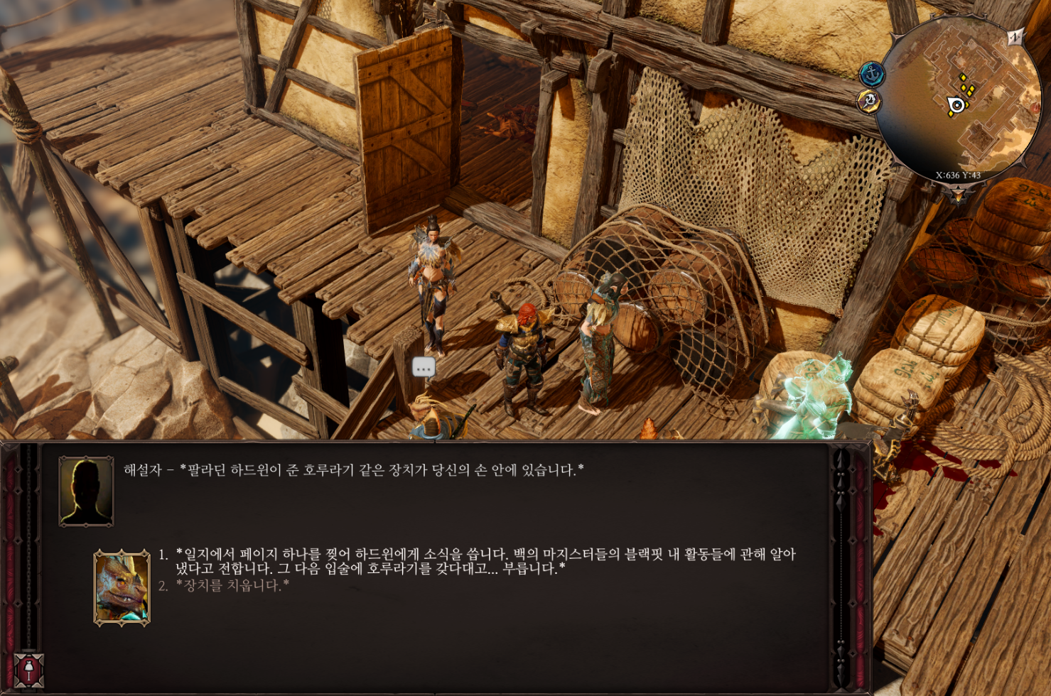 이후 부두에서 아까 팔라딘 하드윈에게 받은 전쟁 부엉이 호루라기를 사용하자
