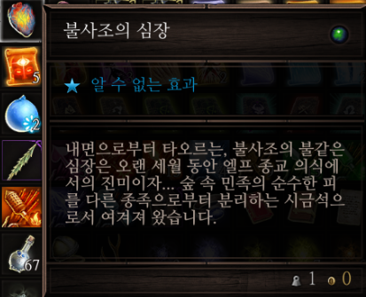 불사조의 심장을 엘프 캐릭터로 먹으면 불타는 혀 스킬을 얻을 수 있다