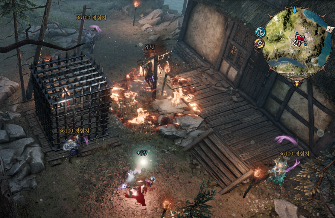 다른 캐릭터들은 텔레포트 스킬로 앨리슨을 절벽 아래로 던져버린다
