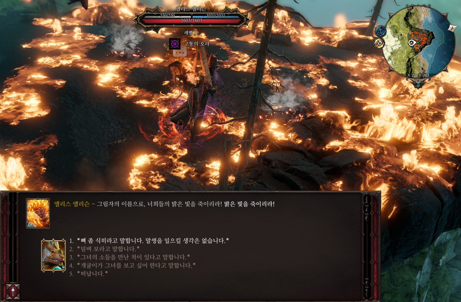 전투 전에는 회피의 오라를 쓰고 앨리슨에게 말을 건 다음에 전투를 시작하고