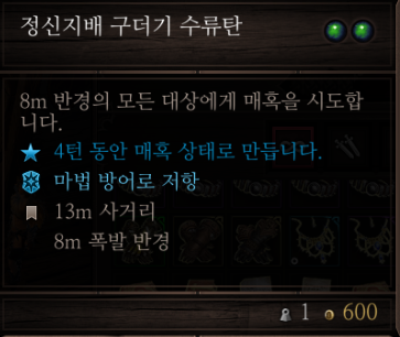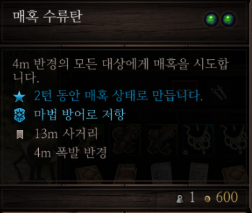 소환술을 찍으면 배우는 정신 지배가 단일 타겟에 3ap, 2턴 매혹인데