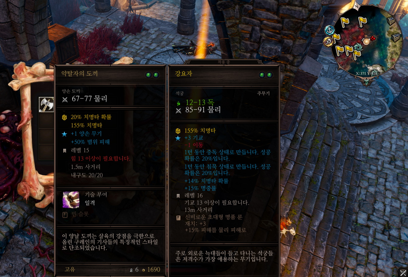 악마들을 잡기 전에 이 위치에 쓰러져 있는 검은 결사단원에게서 약탈자의 도끼를 챙기자