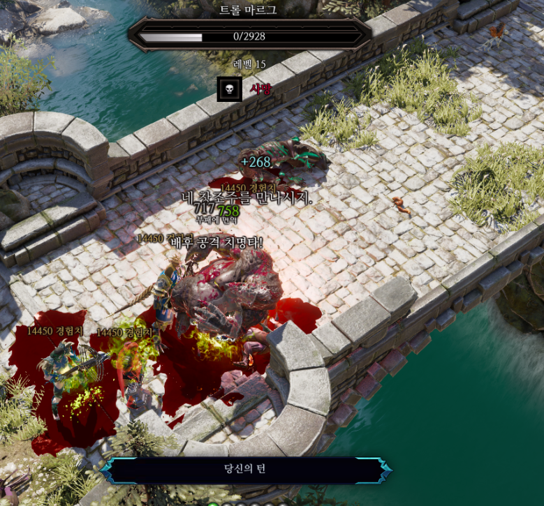 저기 보이는 트롤의 피는 트롤을 한대 때리는 순간 발동되는데