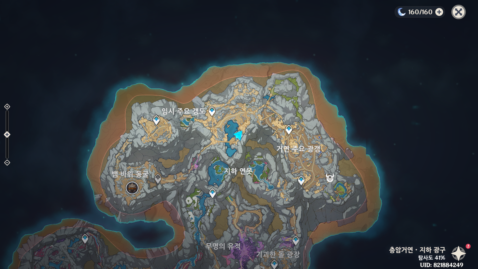 뱀 바위 동굴 방향의 워프를 발견할 수 있다