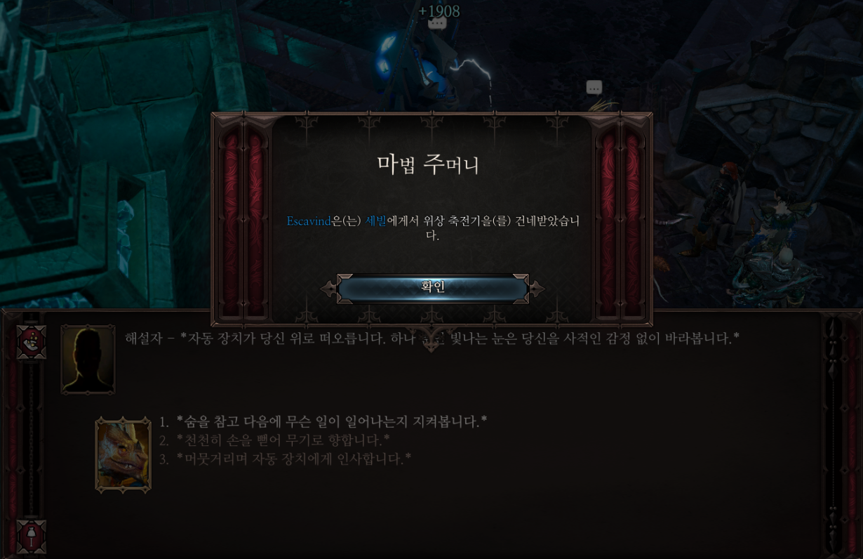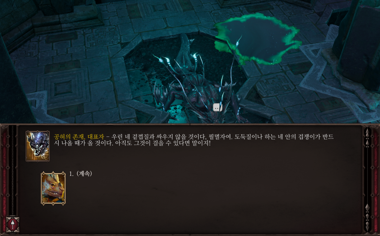이제 여기서 가운데에 있는 이터널 심판자에게 말을 걸면