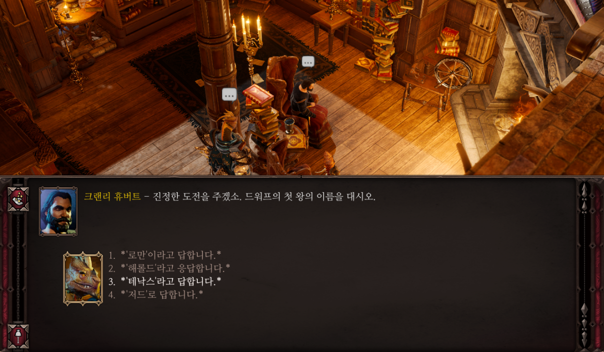 말을 걸면 퀴즈를 3개 낸다