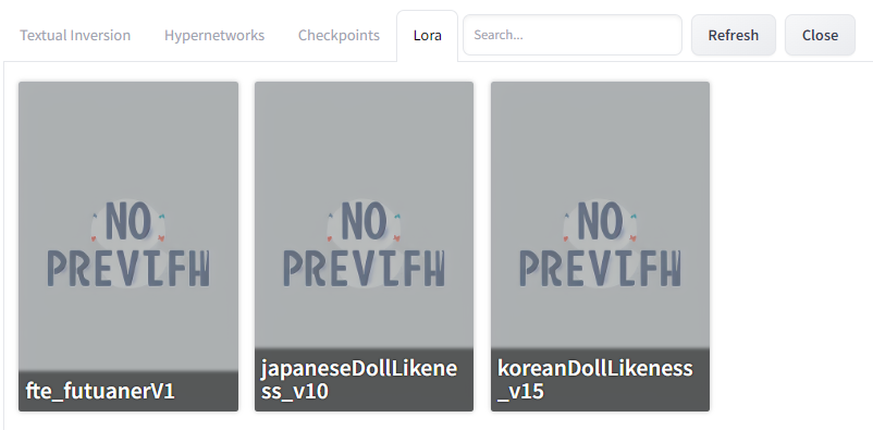 4번 > Textual Inversion, Hypernetworks, Checkpoints, Lora 사용 버튼