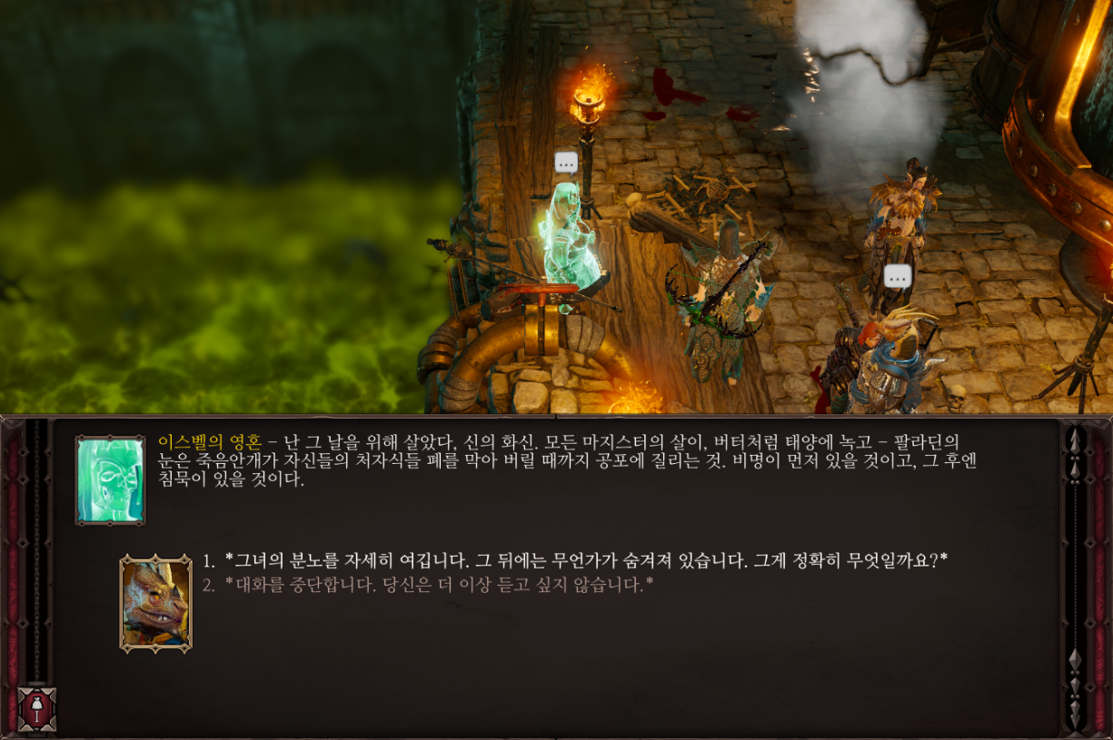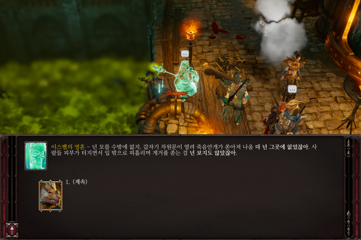 이사벨에게 말을 걸어보면 죽음안개를 맞고 분한 나머지