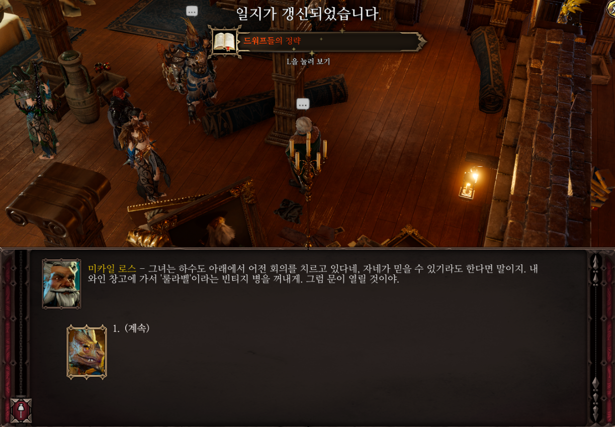 하수도 아래에서 회의중이라 하고 지하 창고에서 룰라벨이라는 와인을 꺼내라고 하는데