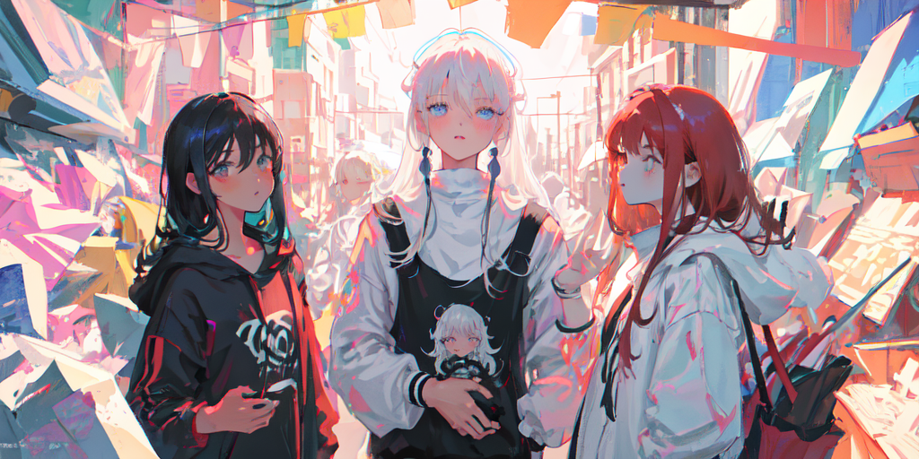 AND ((ultra-detailed)), ((illustration)), 3girls, black hair