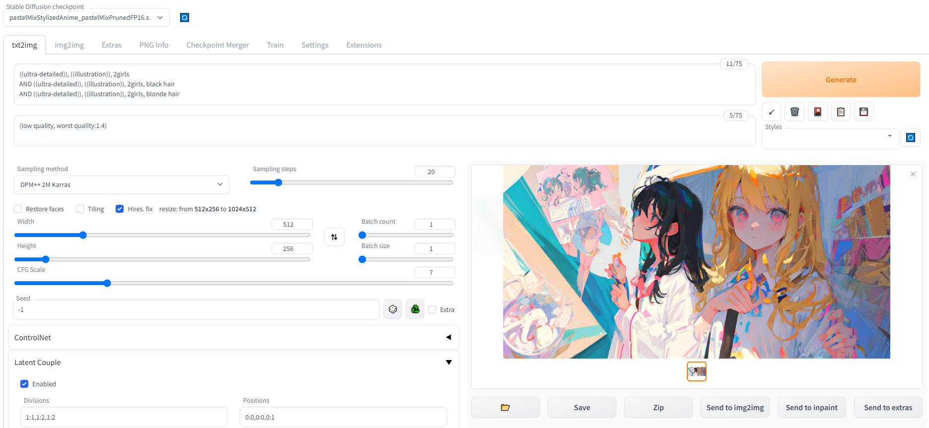 1girl 로 변경하면 두 캐릭터가 하나로 합쳐져 버린다
