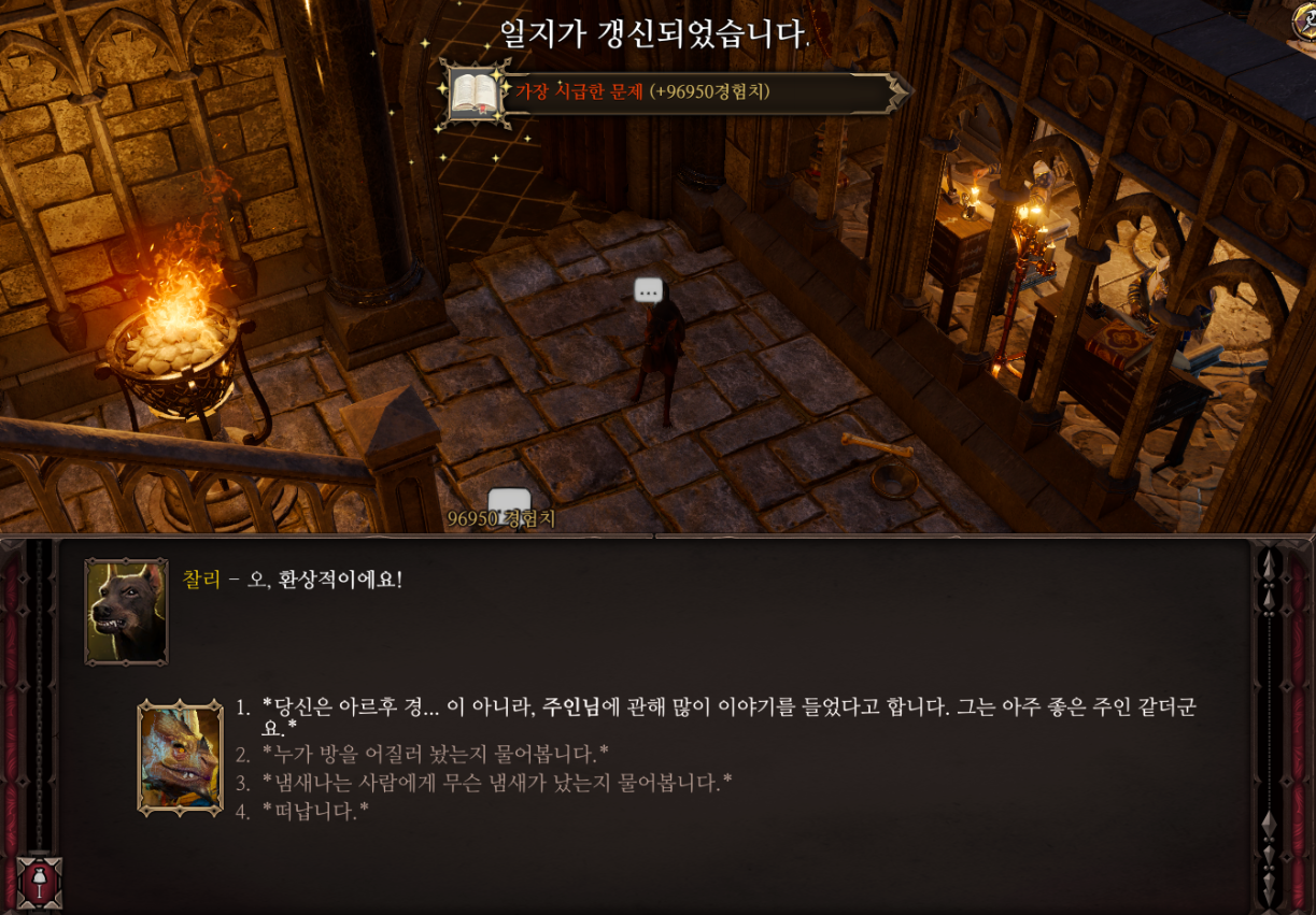 가장 시급한 문제 퀘스트는 대성당 아르후의 방 앞에 있는 찰리에게 받을 수 있는데