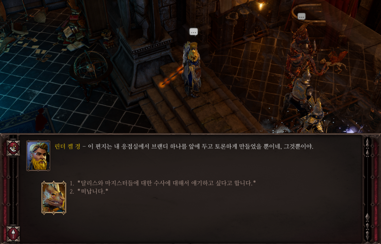 이후 린더 켐의 자택에서 여러 사람들에게 말을 걸어보면
