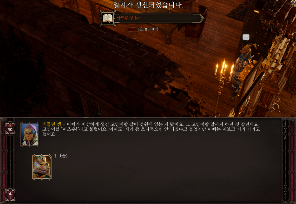 아까 읽은 일지 내용에 대해 물어보면 본인의 저택에서 종종 하던 얘기라던데