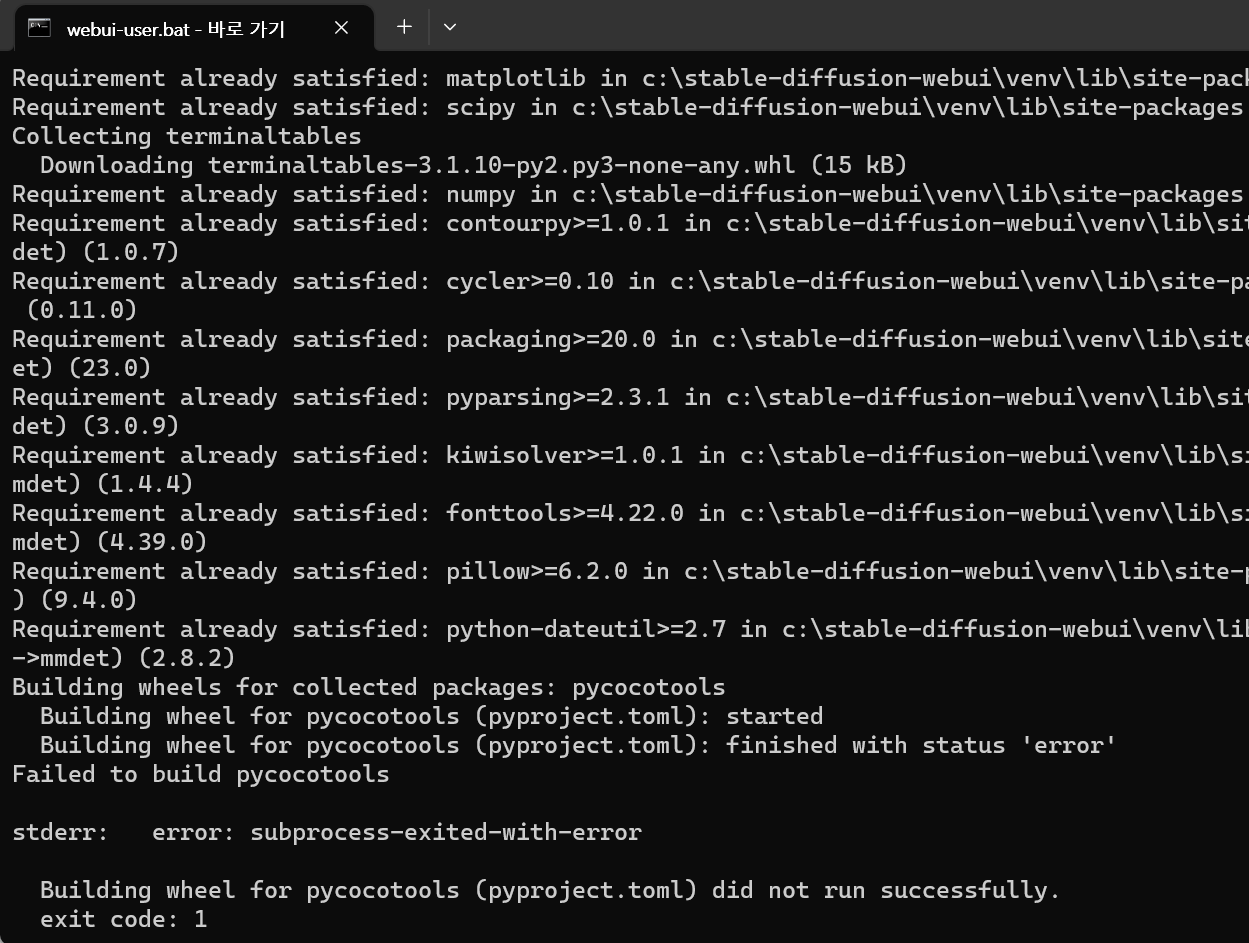 WebUI 에서 DDetailer를 설치하려 하던 도중